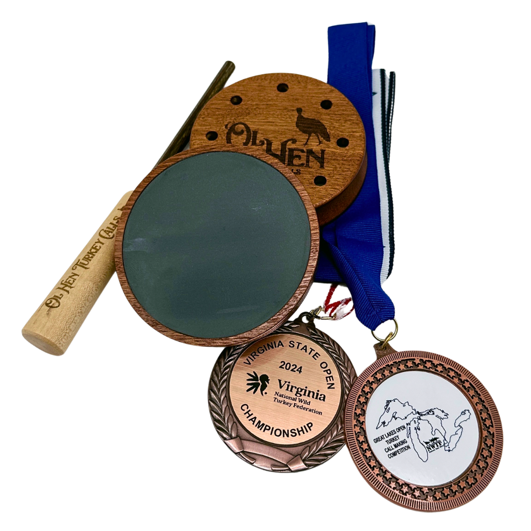 Perfect gift for every turkey hunter from beginner to expert. These are very user friendly. Please note that all calls are 100% handmade from rough wood. While we strive to make all calls the same, slight variations in wood grain and color do happen. (calls do NOT come with medals/ribbons)